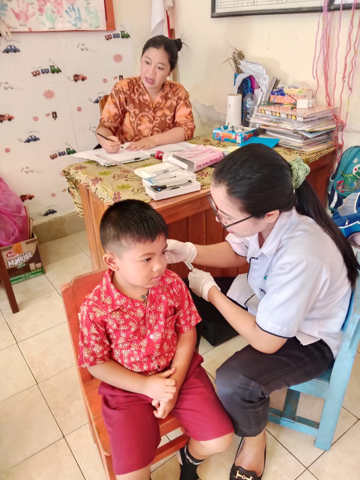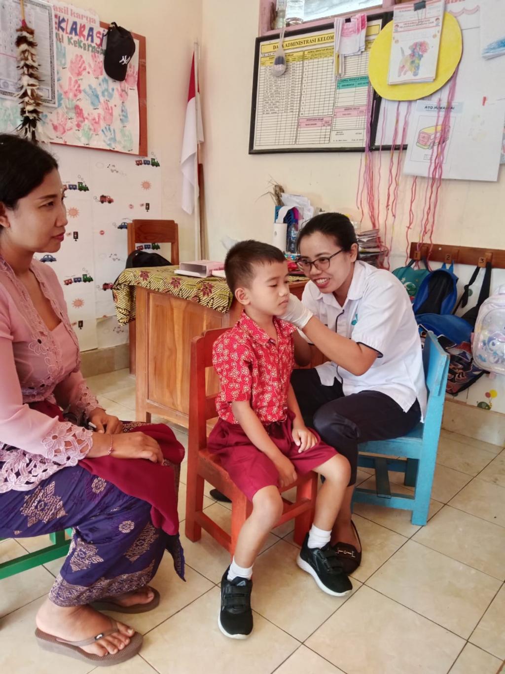 Kegiatan DDTK ( Deteksi Diri Tumbuh Kembang Anak ) hari ini yang di laksanakan di TK Kumara Dipa meliputi pemeriksaan telinga, tinggi badan dan lingkar kepala oleh Bidan Desa.