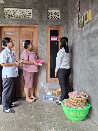 Pendampingan kepada ibu hamil serta penempelan stiker p4k oleh kader bkb didampingi oleh bindes